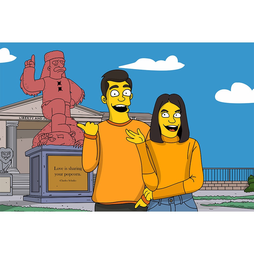 The ideal personalized present for a cartoon enthusiast is this custom-made picture of your favorite cartoons! Order a unique yellow portrait immediately, and you'll have it in a few days. It's perfect for anniversary, birthday or any other occasion as a gift for boyfriend, girlfriend, family or friends! Choose from several backgrounds, too!