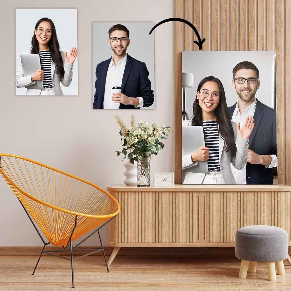Want to remember a loved one passing and merge photos of two people you love? This custom memorial portrait is the perfect memento for your loved one or friend. A photo memorial portrait has sentimental value and would make the perfect touching memorial or birthday gift. You can get this personalized photo gift with as many people as you’d like merged into one photo. We are sure that hearts will be warmed with this custom loved one memorial photo.