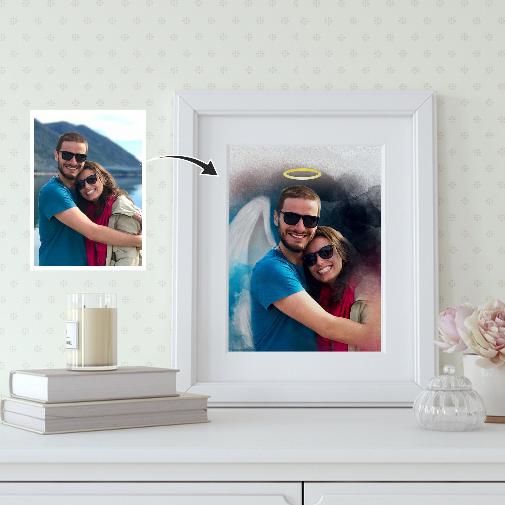 Want to remember a loved one passing and merge photos of two people you love? This custom watercolor memorial portrait is the perfect memento for your loved one or friend. A photo memorial portrait has sentimental value and would make the perfect touching memorial or birthday gift. You can get this personalized photo gift with as many people as you’d like merged into one photo. We are sure that hearts will be warmed with this custom loved one memorial photo